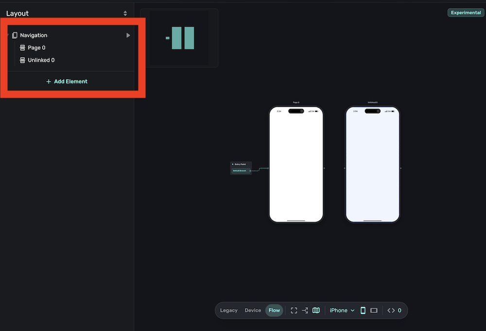 The Navigation element is what turns a paywall into a Flow. Without it, you have a standard paywall. With it, you unlock the Canvas view and the ability to connect pages together.