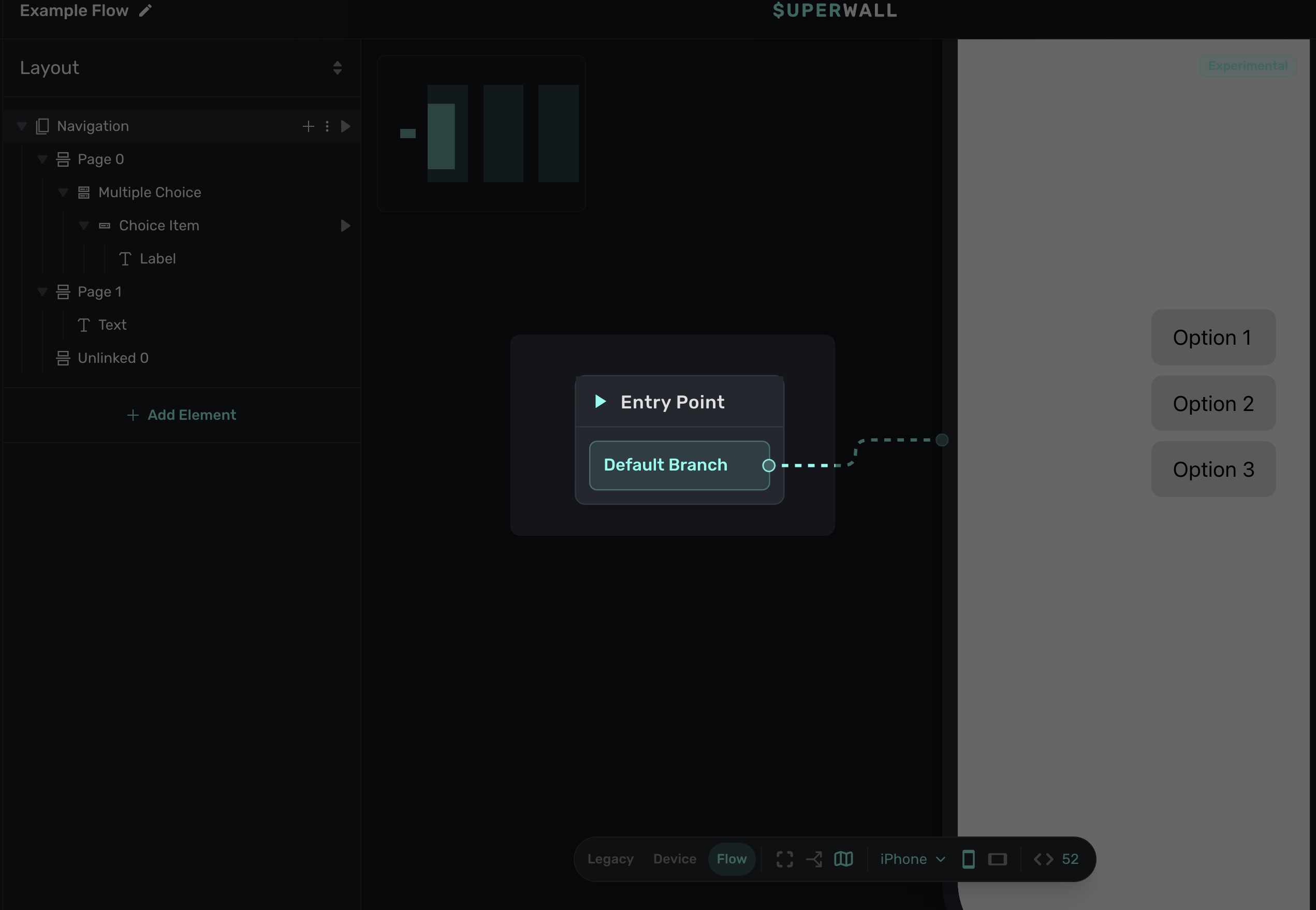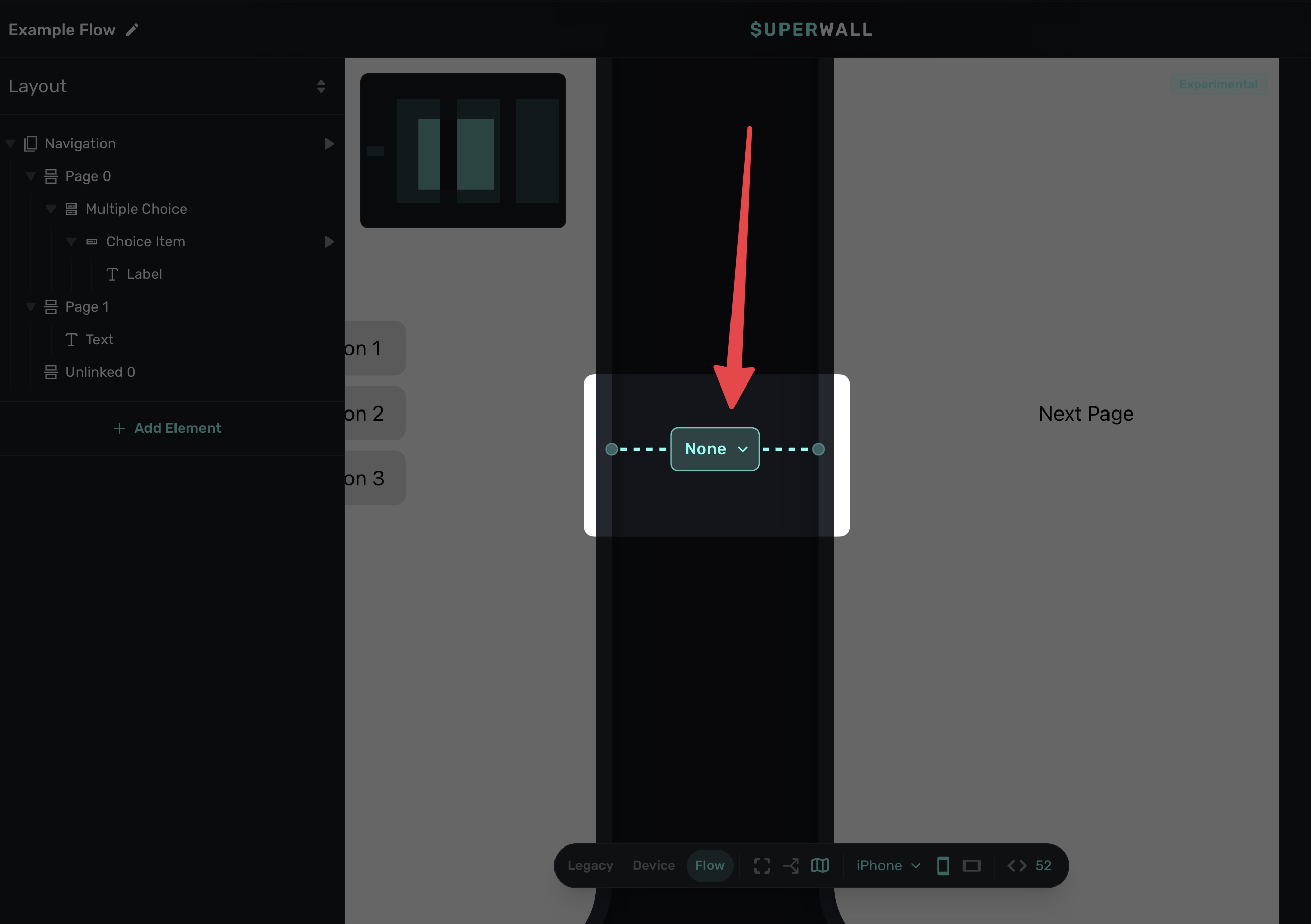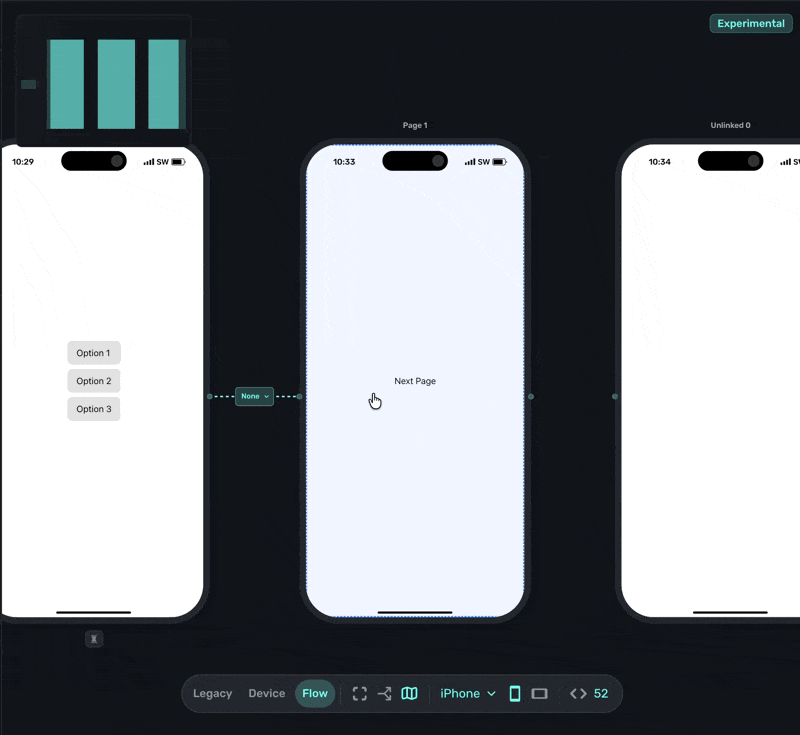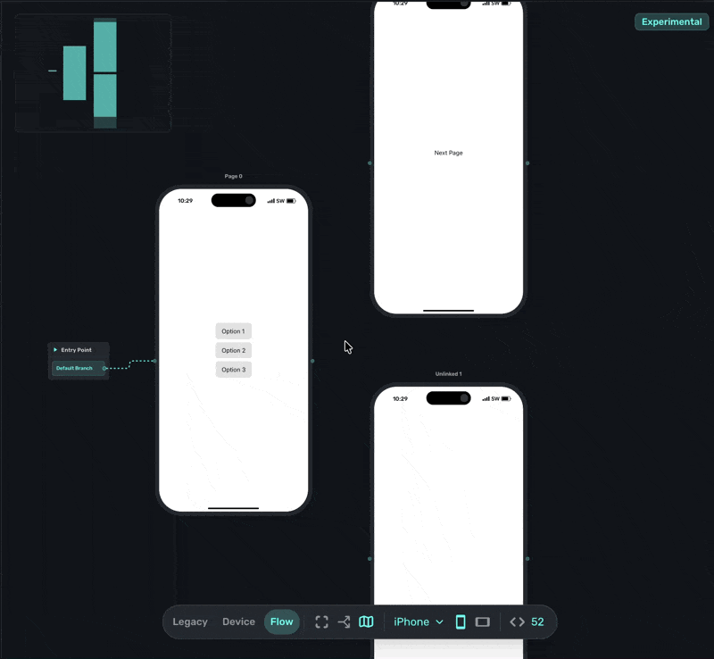 Linking pages is how you define the path through your flow. You'll connect pages using nodes in the Canvas view, and each connection (route) can have its own animation and conditions.