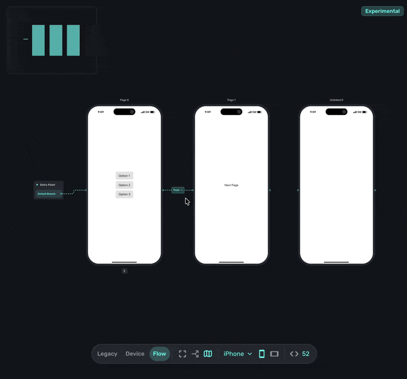 Navigation in Flows is handled by the Navigation element and other components you add tap behaviors too (such as CTA buttons). Users move forward along the routes you've defined, or backward to previous pages. The system is intentionally simple. Complex routing logic lives in the routes, not the buttons.