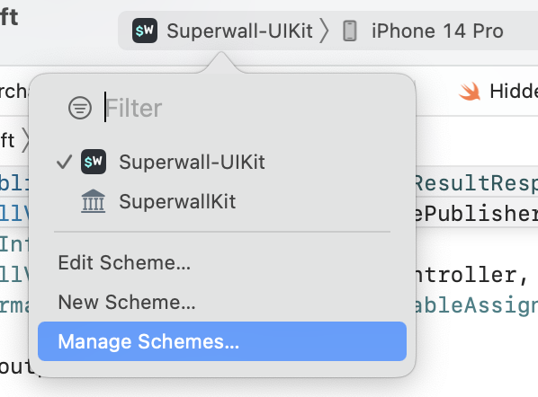 Click the scheme in the scheme menu and click Manage Schemes...:
